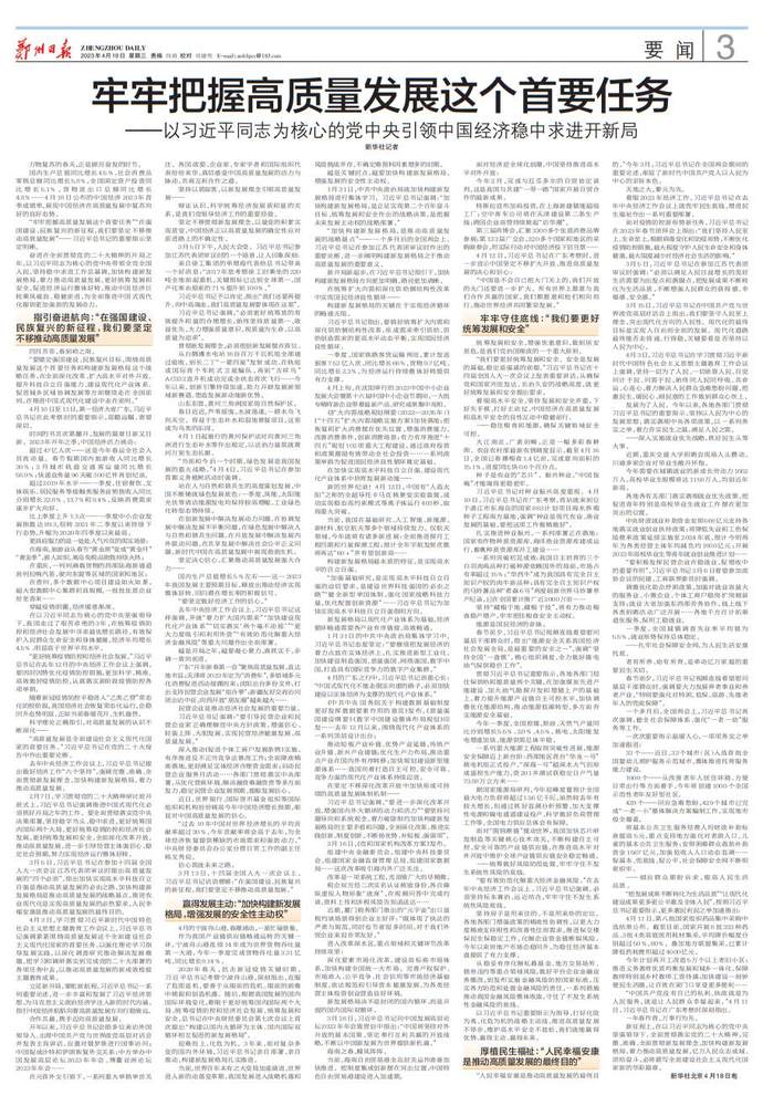 “牢牢把握高质量发展这个首要任务”“在强国建设、民族复兴的新征程,我们要坚定不移推动高质量发展”——习近平总书记的重要指示坚定明晰。
