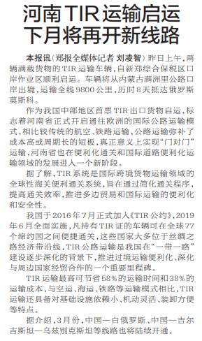 河南TIR运输启运 下月将再开新线路