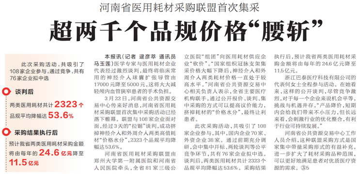 医学专家与医用耗材企业代表经过激烈谈判,最终将临床常用的神经介入球囊扩张导管由17000元降至5000元,这将大大减轻颅内血管狭窄患者的手术负担。(今日《人民日报》3版)