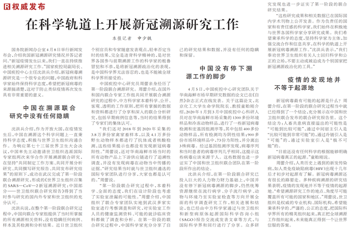 在科学轨道上开展新冠溯源研究工作