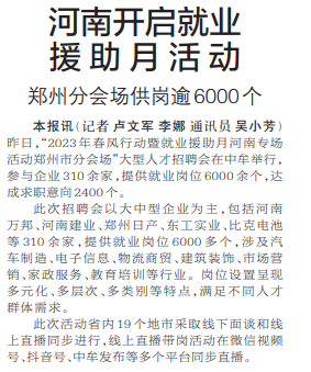 郑州分会场供岗逾6000个