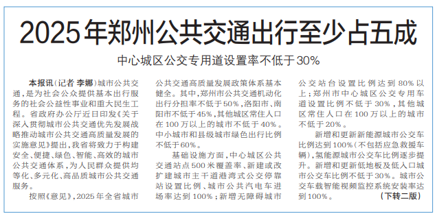 2025年郑州公共交通出行至少占五成