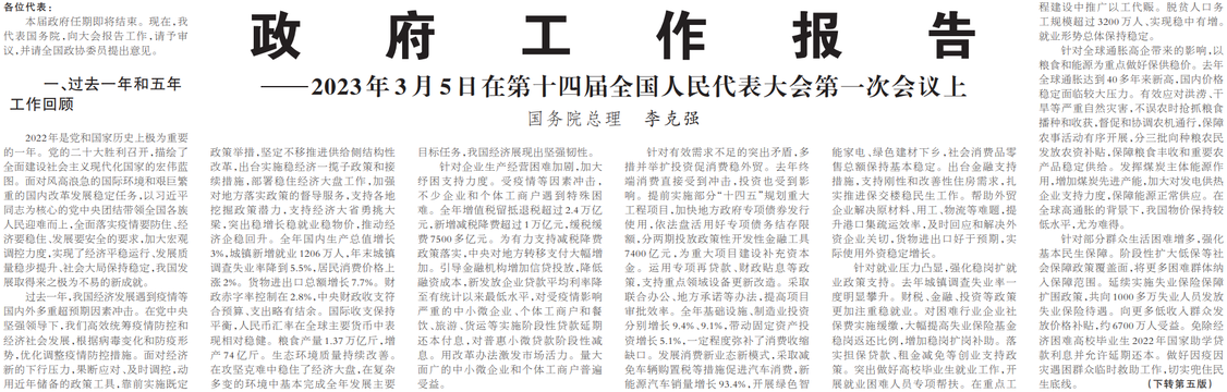 ——2023年3月5日在第十四届全国人民代表大会第一次会议上