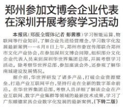 郑州参加文博会企业代表在深圳开展考察学习活动