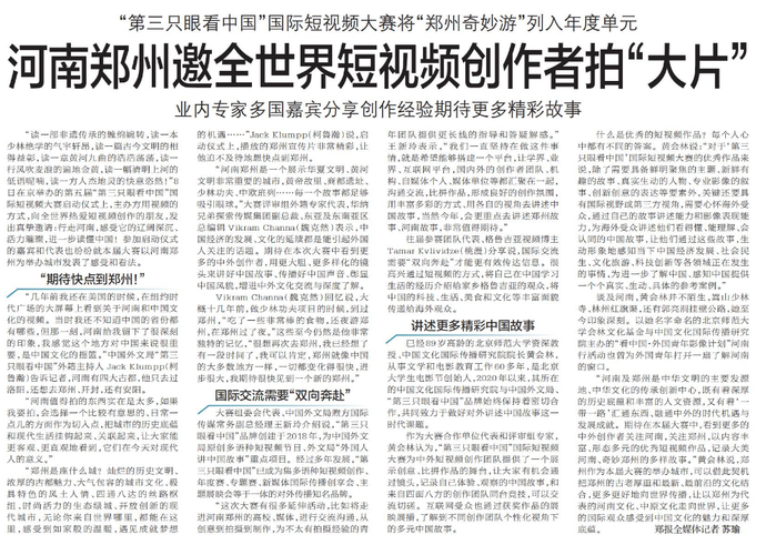 “第三只眼看中国”国际短视频大赛将“郑州奇妙游”列入年度单元
