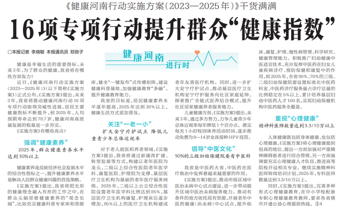 《健康河南行动实施方案(2023—2025年)》干货满满