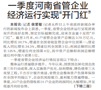 一季度河南省管企业经济运行实现“开门红”
