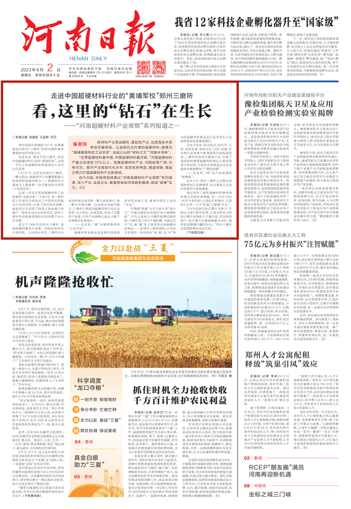 自今日起,本报将陆续推出“河南超硬材料产业观察”系列报道,深入产业、走进企业,看看我省如何领跑新赛道、锻造“超硬”实力。