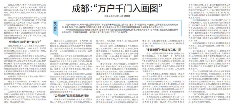 郑州报业集团派出记者分赴三地采访,沿着郑州市党政代表团的行程线路,探寻三地在产业培育、结构调整、制造业高质量发展等方面的理念、思路和创新举措。今日推出第三篇《成都:“万户千门入画图”》。