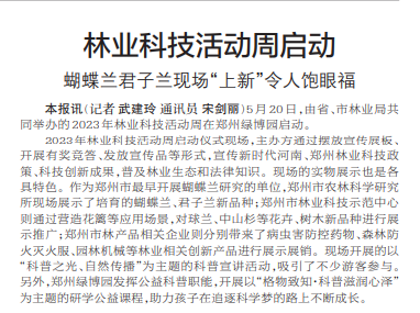5月20日,由省、市林业局共同举办的2023年林业科技活动周在郑州绿博园启动。(今日《郑州日报》2版)