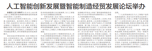 人工智能创新发展暨智能制造经贸发展论坛举办