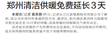 郑州清洁供暖免费延长3天