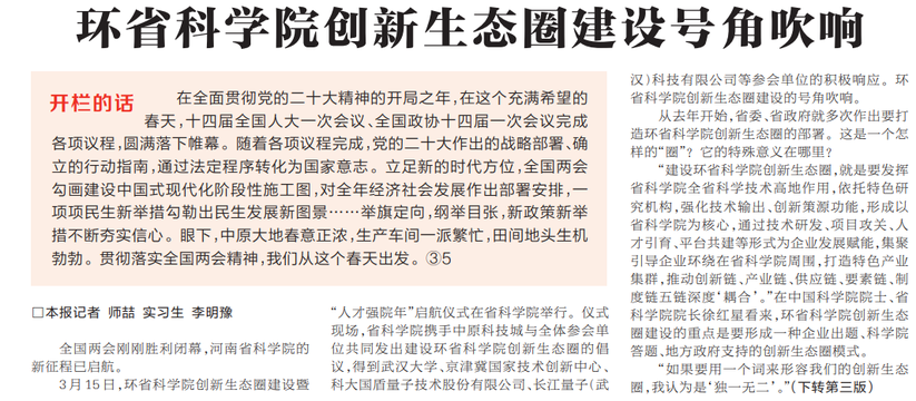 全国两会刚刚胜利闭幕,河南省科学院的新征程已启航。