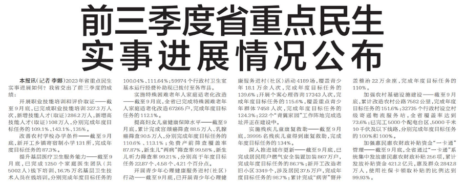 2023年省重点民生实事进展如何?我省交出了前三季度的成绩: