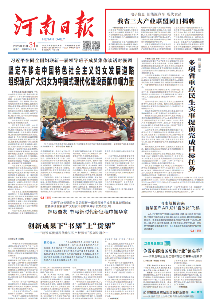 10月30日,习近平总书记同全国妇联新一届领导班子成员集体谈话并发表重要讲话,在我省广大妇女干部群众中引发热烈反响。(今日《河南日报》2版)