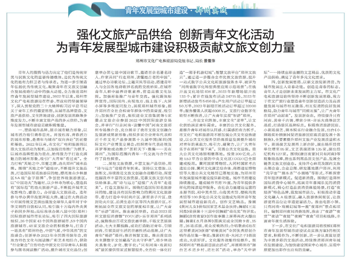 为青年发展型城市建设积极贡献文旅文创力量