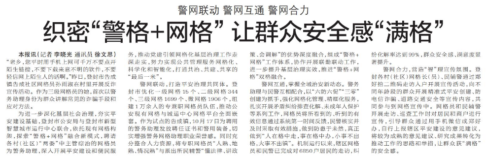 织密“警格+网格” 让群众安全感“满格”