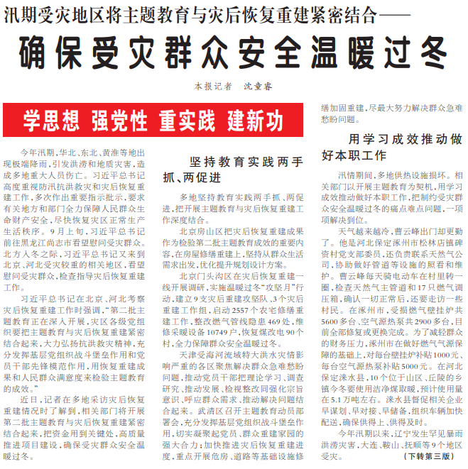 汛期受灾地区将主题教育与灾后恢复重建紧密结合——