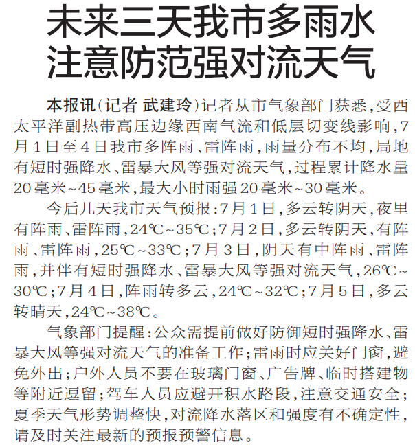 未来三天我市多雨水注意防范强对流天气