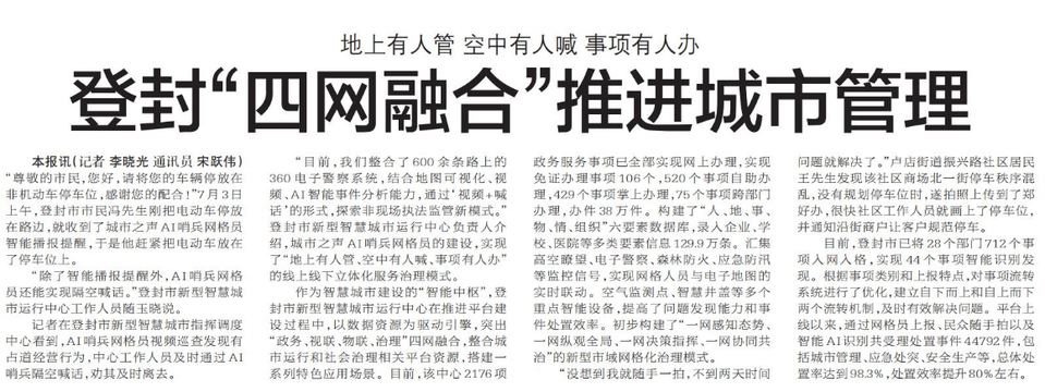 登封“四网融合”推进城市管理