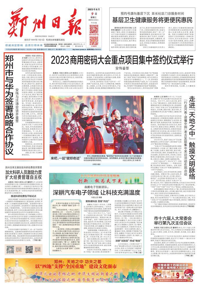 8月8日,郑州市与来郑参加2023商用密码大会的企业举行重点项目集中签约仪式,省委常委、市委书记安伟出席并鉴签。(今日《郑州日报》1版)