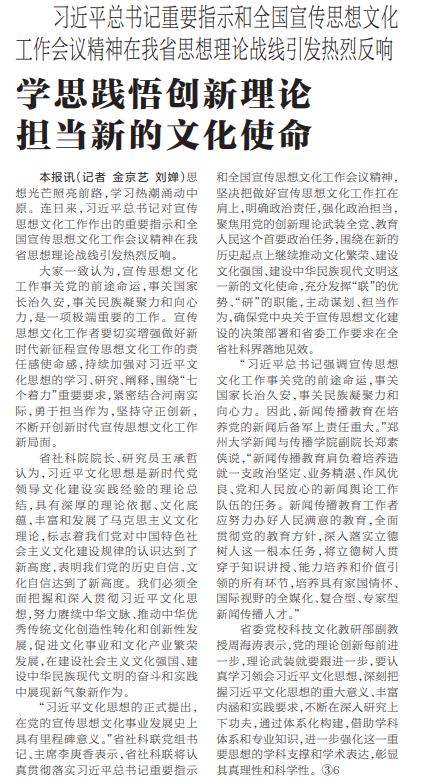 习近平总书记重要指示和全国宣传思想文化工作会议精神在我省思想理论战线引发热烈反响