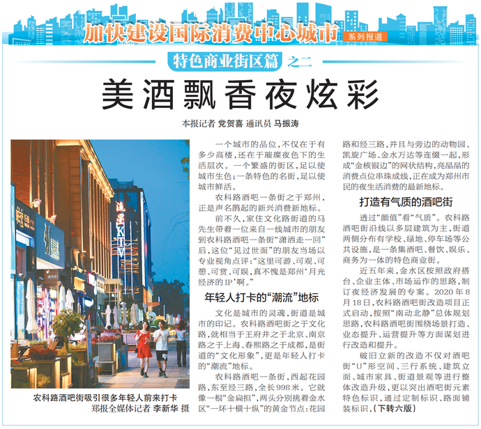 一个城市的品位,不仅在于有多少高楼,还在于璀璨夜色下的生活层次。一个繁盛的街区,足以使城市生色;一条特色的名街,足以使城市鲜活。(今日《郑州日报》1版、6版)