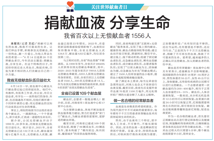 我省百次以上无偿献血者1556人