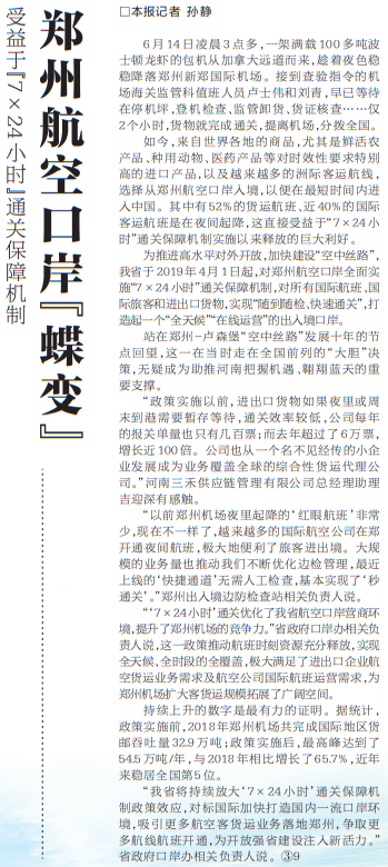郑州航空口岸“蝶变”