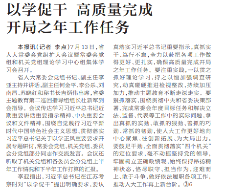 7月13日,省人大常委会党组扩大会议暨常委会党组和机关党组理论学习中心组集体学习会召开。(今日《河南日报》1版)