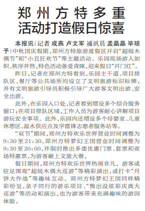 郑州方特多重活动打造假日惊喜