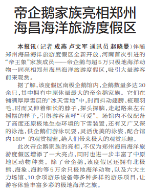 帝企鹅家族亮相郑州海昌海洋旅游度假区