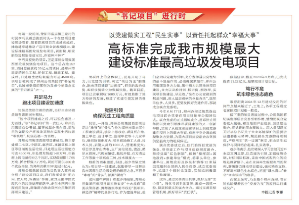 高标准完成我市规模最大建设标准最高垃圾发电项目