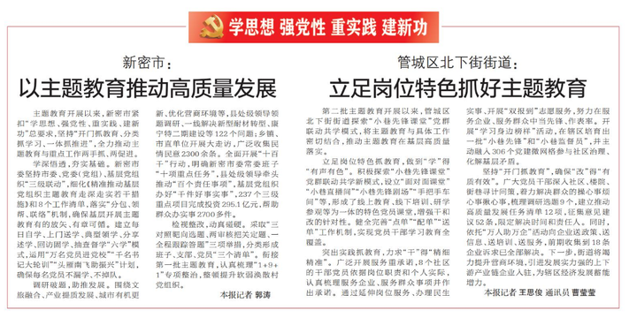第二批主题教育开展以来,管城区北下街街道探索“小巷先锋课堂”党群联动共学模式,将主题教育与具体工作密切结合,推动主题教育在基层高质量落实。(今日《郑州日报》3版)