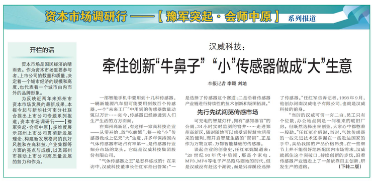 为反映近两年来郑州市资本市场发展的最新成果,本报今起与新华社河南分社联合推出上市公司专题系列报道:资本市场调研行——【豫军突起·会师中原】,多维度展示郑州上市公司贯彻新发展理念、构建新发展格局的良好风貌和在高科技、产业集群等方面的亮点与成绩,以及郑州市推动上市公司高质量发展的努力和作为。