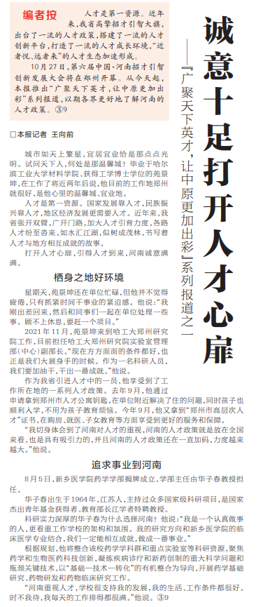 ——“广聚天下英才,让中原更加出彩”系列报道之一