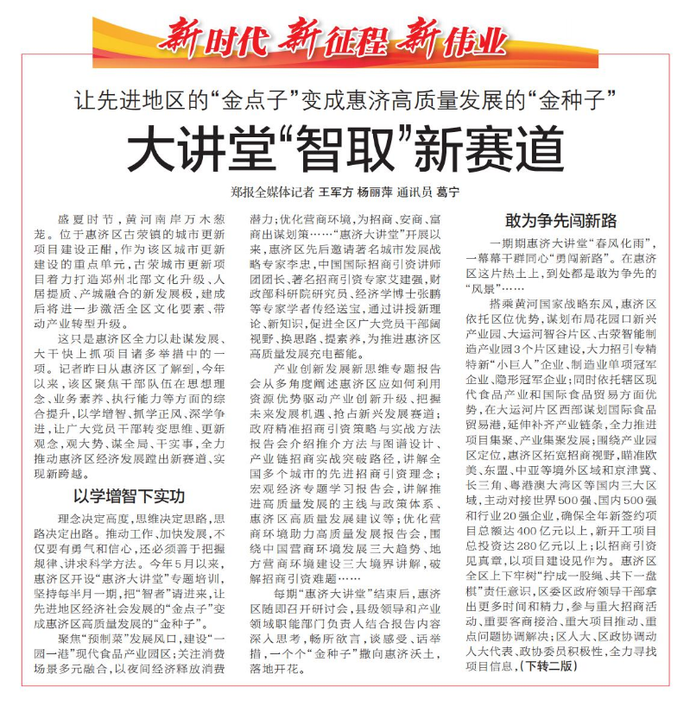 让先进地区的“金点子”变成惠济高质量发展的“金种子”