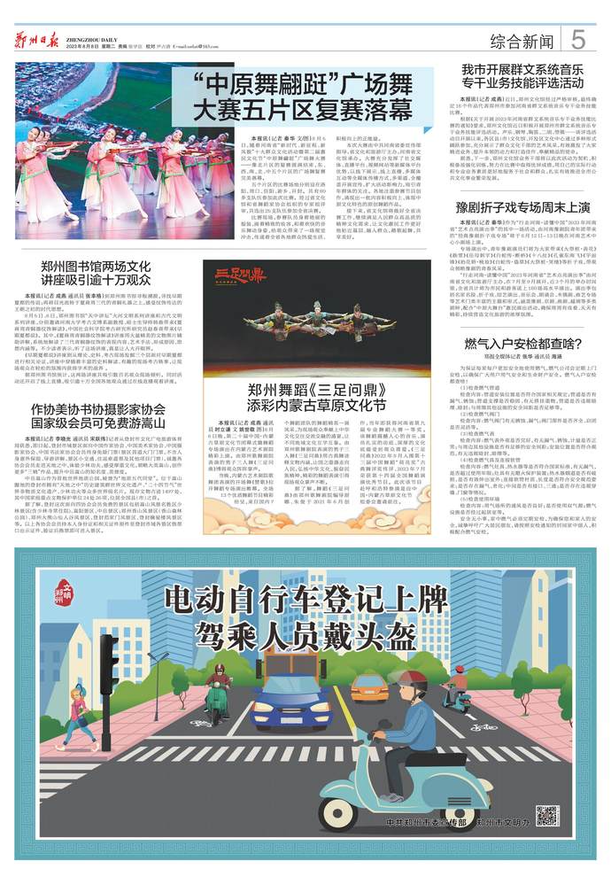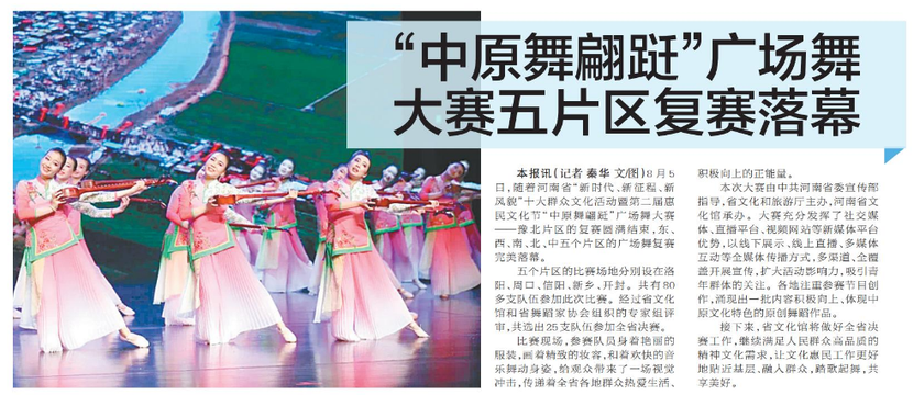 8月5日,随着河南省“新时代、新征程、新风貌”十大群众文化活动暨第二届惠民文化节“中原舞翩跹”广场舞大赛——豫北片区的复赛圆满结束,东、西、南、北、中五个片区的广场舞复赛完美落幕。(今日《郑州日报》5版)