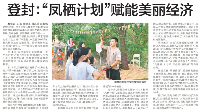 昨日,位于少室山脚下的登封市少林街道雷家沟村的嵩山心意风车农场内,草坪碧绿、花开争艳、硕果飘香、风铃飞转……(今日《郑州日报》7版)