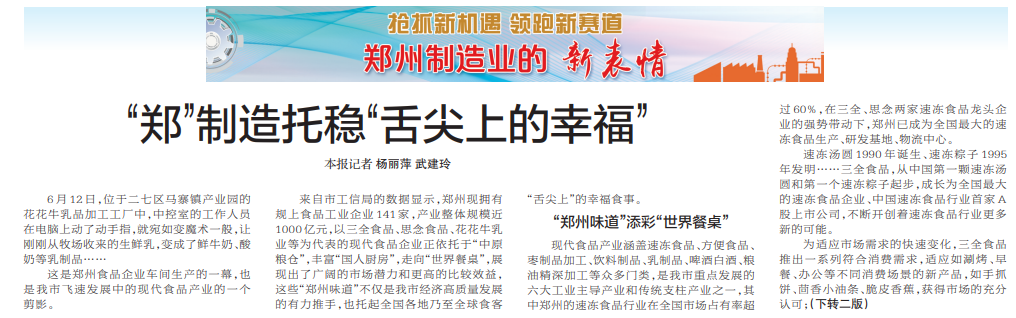 “郑”制造托稳“舌尖上的幸福”