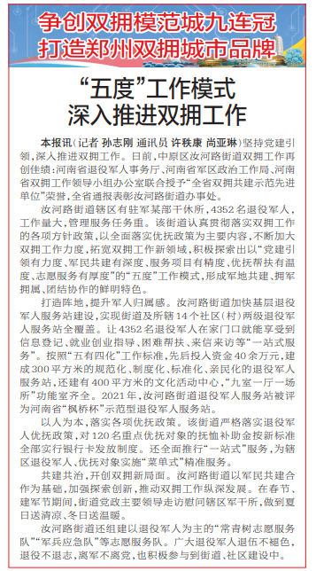 “五度”工作模式 深入推进双拥工作