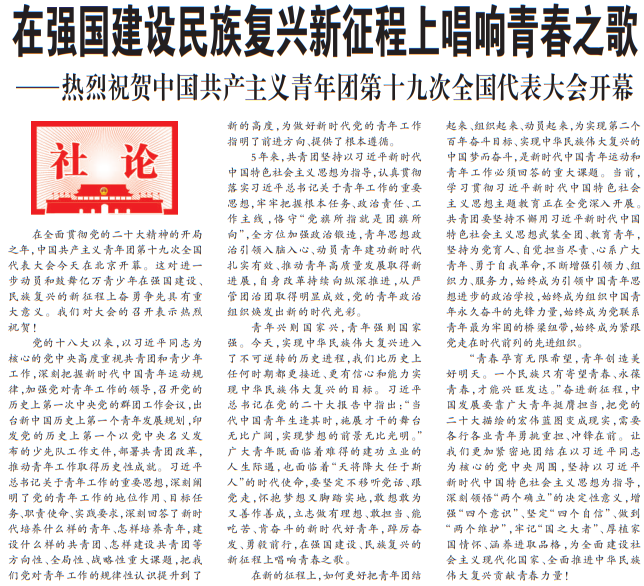 ——热烈祝贺中国共产主义青年团第十九次全国代表大会开幕