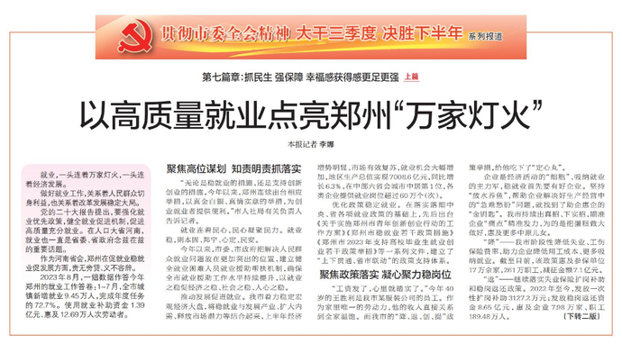 做好就业工作,关系着人民群众切身利益,也关系着改革发展稳定大局。(今日《郑州日报》1版、2版)