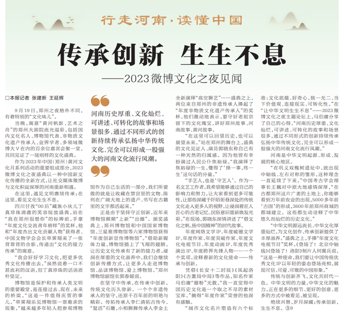9月19日,郑州之夜格外不同,有着特别的“文化味儿”。