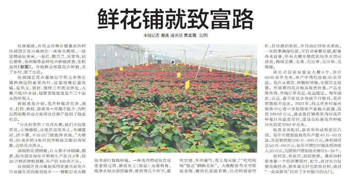 秋意渐浓,在巩义市鲁庄镇桑家沟村 佳润园艺花卉基地的一座座花棚里,一盆盆精品仙客来、一品红、蟹爪兰、天堂鸟、钻石翡翠、非洲菊等品种花卉娇媚清香,生机盎然(如图)。当地群众依靠花卉种植,美了乡村、甜了生活。(今日《郑州日报》7版)