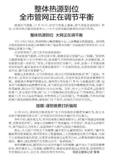 整体热源到位 全市管网正在调节平衡