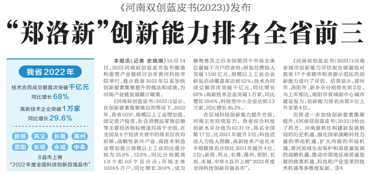 “郑洛新”创新能力排名全省前三