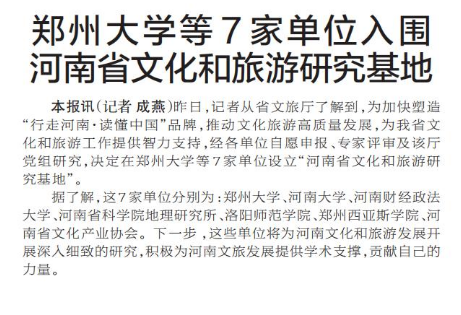 郑州大学等7家单位入围河南省文化和旅游研究基地