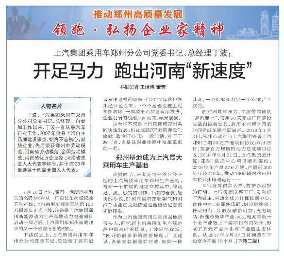 上汽集团乘用车郑州分公司党委书记、总经理丁波: