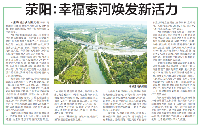 昨日,记者漫步在荥阳市索河河畔,岸边绿树成荫,水面碧波荡漾,构成一幅和谐美丽的生态画卷。(今日《郑州日报》7版)
